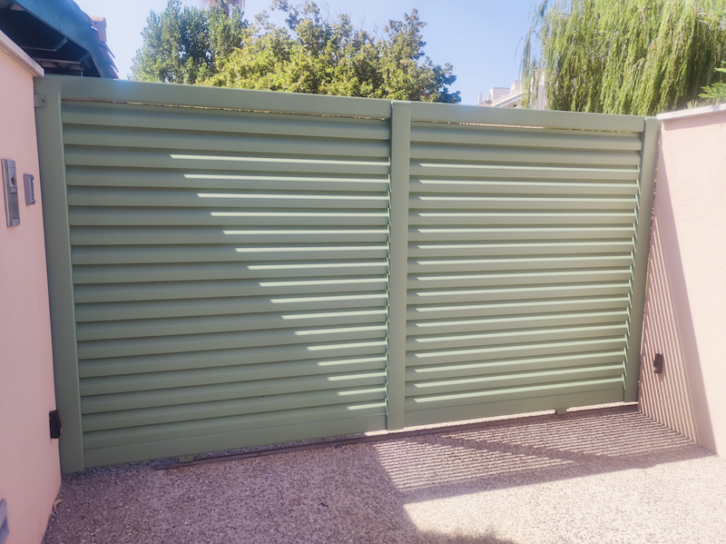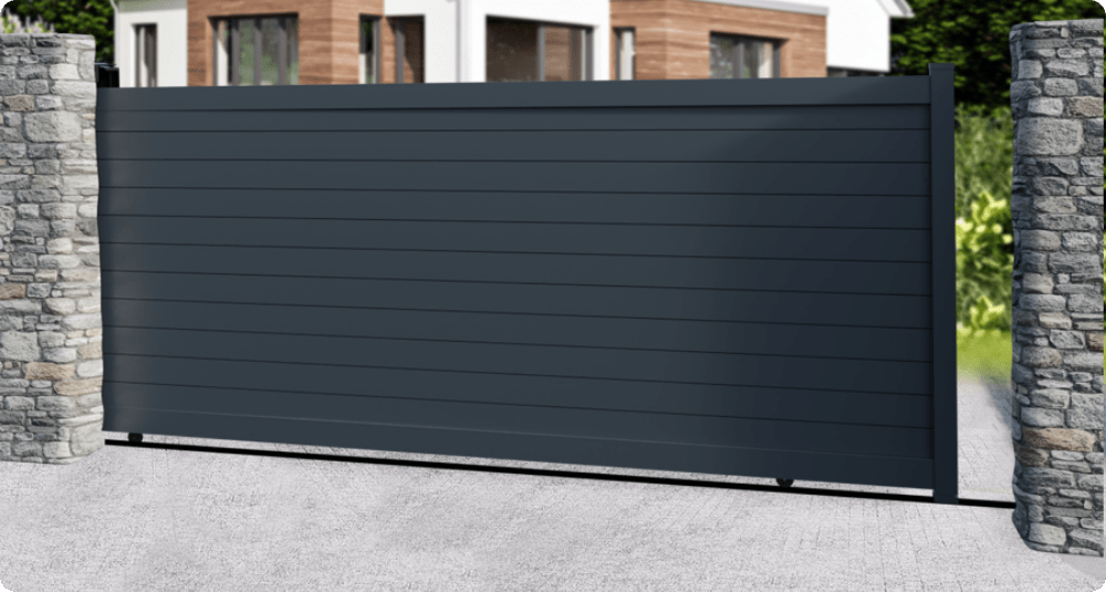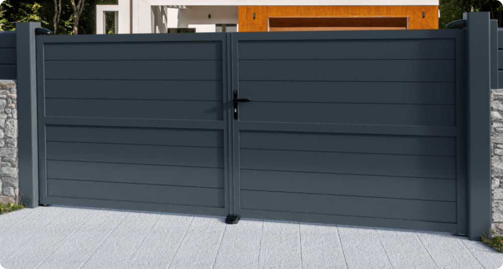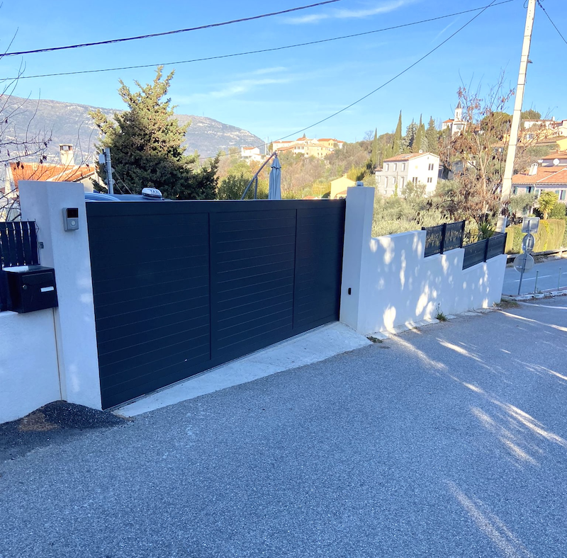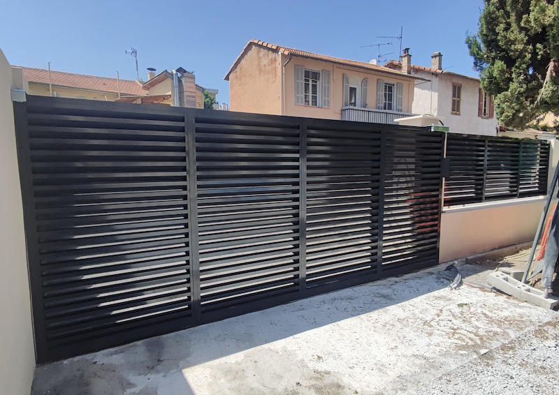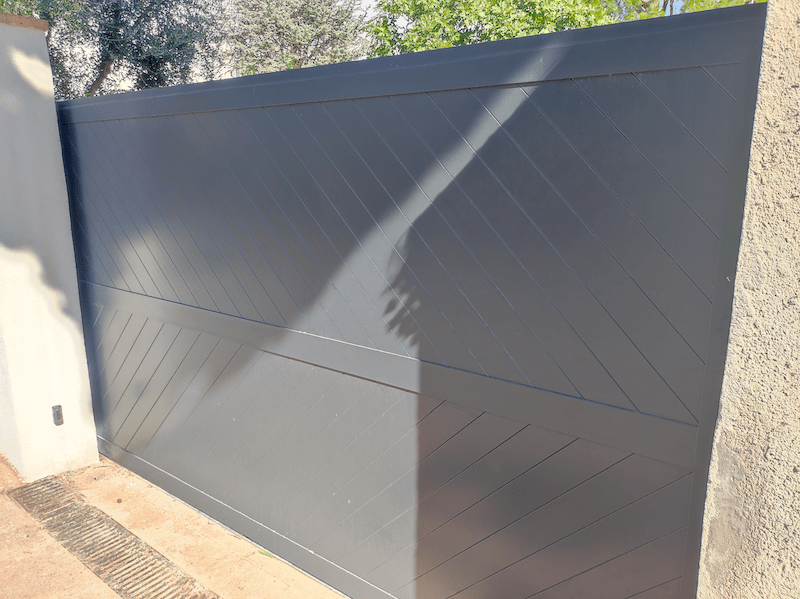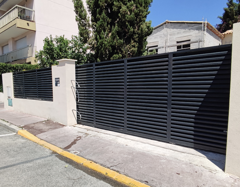Le portail coulissant est composé d’un vantail ou deux vantaux qui coulissent sur un rail. Il peut être motorisé ou manuel.