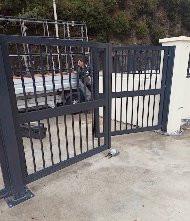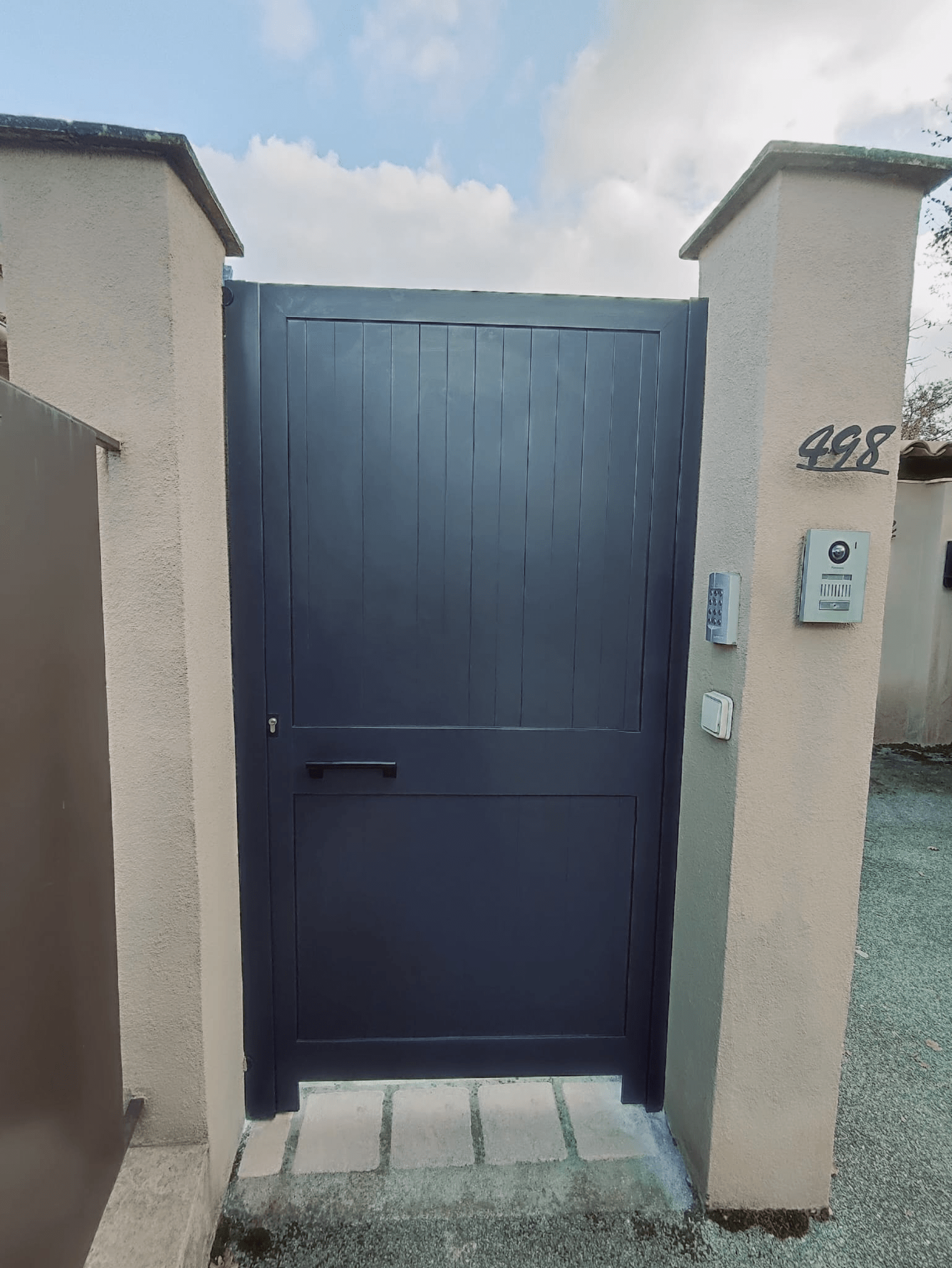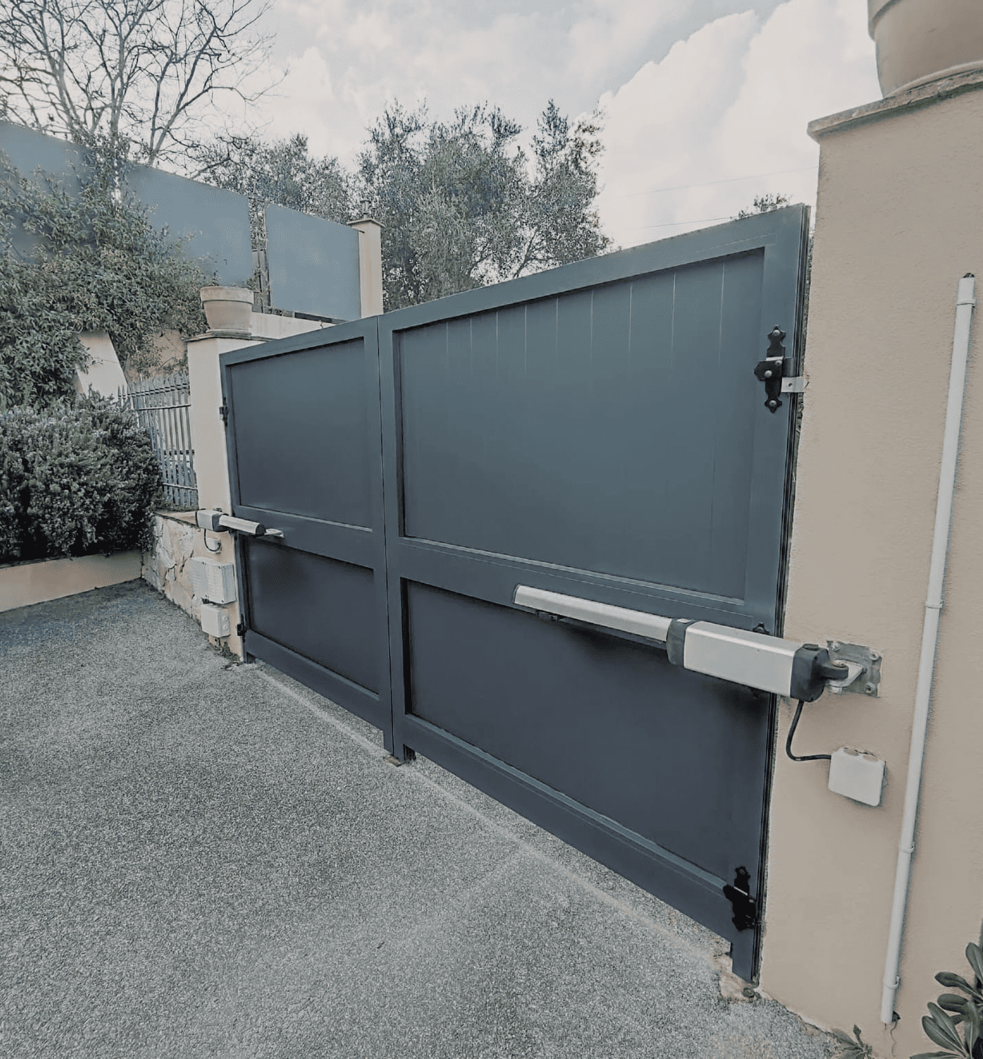 Il peut être motorisé ou manuel et équipé d’une serrure et gâche électrique reliée à un interphone.