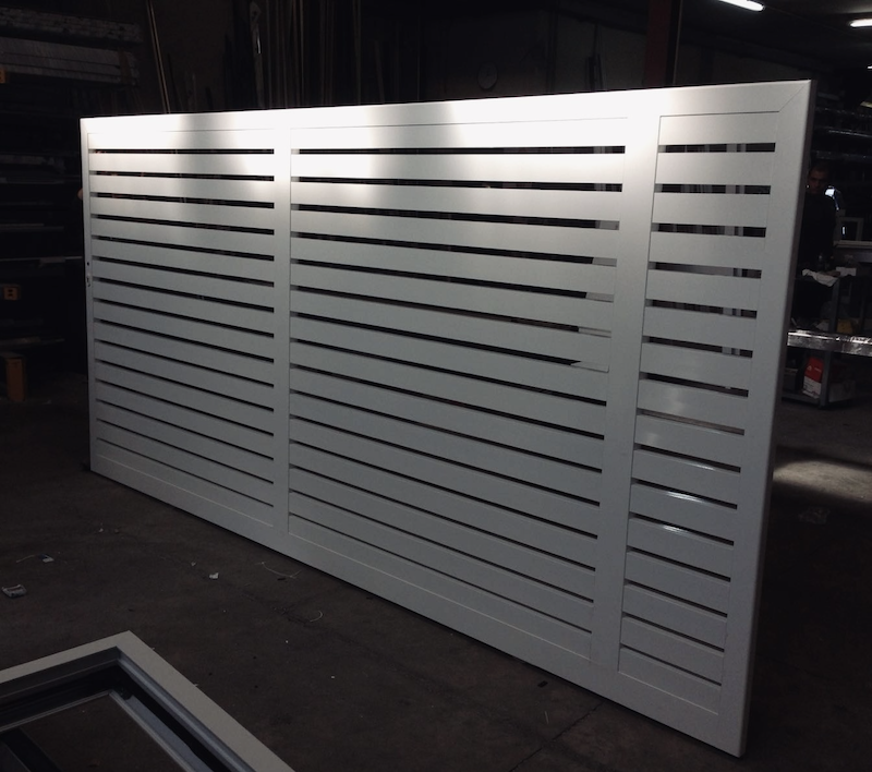 Plusieurs configurations possible concernant le remplissage des panneaux par des lames en aluminium laqué du coloris et de la finition de votre choix.